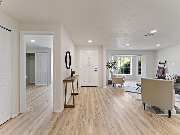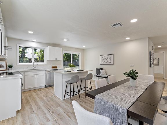 Completely remodeled 1986 ranch style home tucked in a quiet and non through street. NEW roof, NEW heat pump and NEW water heater. Updated kitchen with new cabinets, quartz countertop and island. NEW Luxury Vinyl Plank (LVP) flooring throughout the entire house. Remodeled bathrooms with tile shower and new vanities. All new LED energy efficient light fixtures. Fresh paint interior and exterior. New sliding patio door leads to concrete patio and large deck. Huge backyard features a play structure, trampoline and mature raspberry plants and planter box for your gardening needs. Close to shopping, eating, parks and Nike, Intel, Costco.