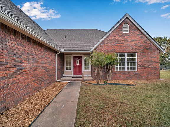 Call this little piece of heaven home. 6.2 acres of extremely private land with mature trees, fenced yard, stocked pond, & shop! 6 miles from the Claremore turnpike gate. The home has recently been updated with fresh paint, new carpet & a BRAND NEW ROOF! Kitchen is open and has granite and pantry. 3 bedrooms down, split floor plan. Upstairs there is an additional room that could be 4th bedroom, office or game room. Storm cellar & above ground pool! Must come see the charm and peaceful country setting!