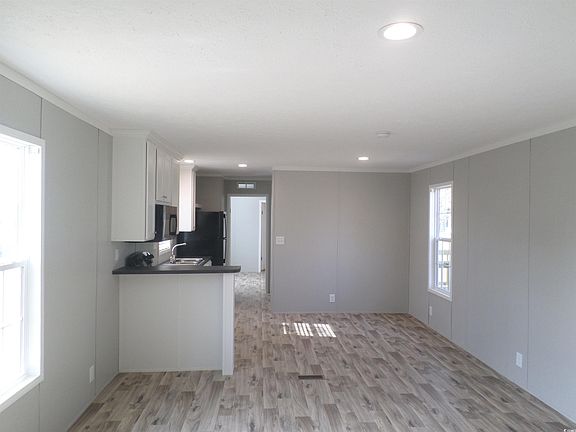 REDUCED!   Affordable 2024 new 2 bedroom 2 bath singlewide manufactured home is set up in the leased land community of Williamson's Estate, Conway, SC. The home has an appliance package to include microwave, dishwasher, range and refrigerator,  split bedroom floor plan with master ensuite, tub/shower combination and the home is plumbed for washer and dryer hook ups.  The open floor space is great for entertaining guests.  The kitchen dining room combination flows nicely together and the lovely vinyl flooring is easily maintained throughout the home.  Two decks are constructed on the front door entry and rear door exit.  The lot has plenty of room for a storage building.   This home is affordable and the manufacturer offers a one year warranty. A must see today.