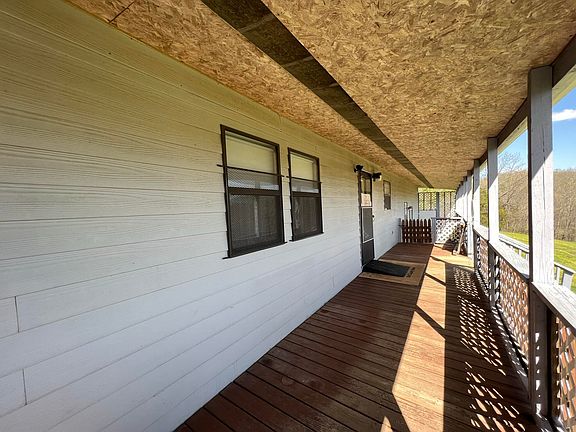 2BD 1BA home on 90 acres m/l. Home is Ranch style and all appliances are included: refrigerator, built-in microwave, electric range, washer and dryer. Pantry and extra storage closets in most rooms. Eat in kitchen is separated from living room by snack bar. 16x24 Hobby room/bedroom 3 also house utility room and has walk-out to covered patio. 6x36 covered deck/front porch with distant view.26x32 Shop has gravel floor and 2 slider garage doors. Small log cabin with loft. The land is mostly wooded with some recoverable pasture and multiple older outbuildings formerly a hog farm thus small livestock working pens and brooding areas. The land has approximately 10 acres pasture with balance wooded hunting land. Several ponds and a wet-weather spring branch that runs through the property.