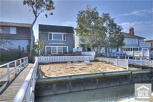 Drastic $500,000 price reduction! Situated on the bayfront, in one of the California coast s most sought-after enclaves; this charming and meticulously maintained Balboa Peninsula Point residence is waterside living at its finest. With three bedrooms, five baths, and an expansive second-level den with a separate entrance and kitchenette; the Traditional-style home is replete with amenities including an elevator, office space, coffered ceilings, hardwood flooring, a bayfront brick terrace overlooking a grassy area and sandy beach, and dock built to accommodate a forty-foot boat (expansion is an option). Stunning views and proximity to the beautiful bay and world-famous beaches; this home is the perfect retreat.