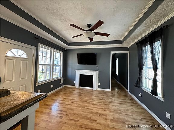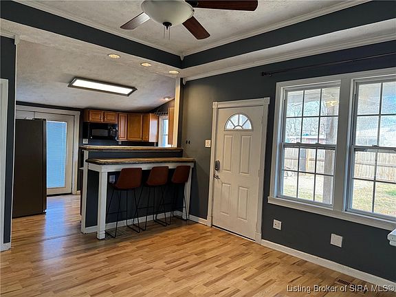 Move in ready 3 BR / 1 bath home close to all the shopping and dining in downtown New Albany. Fully privacy fenced yard with 24' above ground pool, entertainment/grill area, fire pit, 2 sheds and private parking area. Lots of charm inside with 10' ceilings throughout, decorative fireplace mantel (fireplace sealed), laminate flooring throughout. Modern concrete countertops in kitchen with tile backsplash. All appliances remain including washer/dryer. Bathroom recently updated and roof only 4 years old.