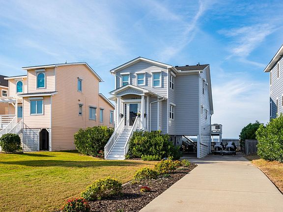 Colington Harbour, a slightly hidden sanctuary, has come into its own with premiere waterfront properties at a fraction of the cost of the Outer Banks mainland. This tucked away island neighborhood has many hidden enjoyments and 1907 Harbour View Drive shows just what the heart desires. Quaint, Updated and new stylish offerings give this 3 bedroom, two bath, 1,534 sq ft home a step-up vs the competition. Packed with all the features you’d want in an Outer Banks getaway and located in a gated island community just minutes from the beach, that was built around water access with its own private marina, sandy sound beaches and parks, this home sits directly on the Albemarle sound with a light show of sunsets from the western exposure. After a day spent on the water tying up to your private dock with two Jet-ski lifts and boat dock, take in the stunning sunsets from the back deck or from inside the open living/dining/kitchen space as the light burst through the large windows on the west wall drenching the interior in warm light. A grand entry way with a warm Foyer leads to dual closets opening to the hall with one main bedroom and beautifully remodeled hall bath that expands into the open living room area. Allowing you to live on one level so you can keep the steps to a minimum. Upstairs features two more bedrooms with a shared bath accessed by a stunning balcony that overlooks the wide-open living space below. The interior of this home is easy on the eyes, like your husband or wife in their 20’s, stunning looks with beauty, comfort and elegance at the heart of it all. Vaulted ceilings, Quality components and an open flow that makes sense all based around a lifestyle of pleasure with water views as far as you can see. A full overhaul in the last 3 years including Hardwood Floor refinishing, Wide Plank LVP, Tongue and Groove ceilings, New Kitchen, New bathroom with walk in tiled shower, new exterior and interior paint, Roof in 2020 and the list goes on…( see agent for a full improvement list)  If you are looking for more space for beach toy storage or a workshop, there is a large ground level storage area that also functions as a dry entry with access through the  covered car port. With association fees that are some of the lowest on the beach, and a hand full of great restaurants just outside the neighborhood on the way to the beach, 1907 Harbour View really packs it in. Schedule a showing today to experience it for yourself!
