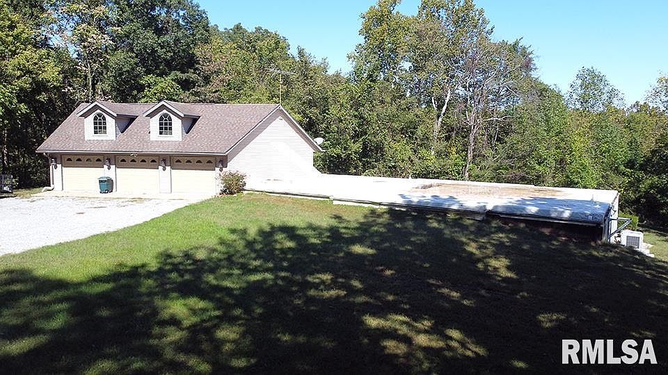 Country Living!! 1.72 acres just south of Murphysboro, this exceptional private home offers a unique blend of space, privacy, and potential! The home boasts 2,157 sq ft of earth-sheltered living space, surrounded by natural landscapes on three sides, creating a serene, low-maintenance lifestyle. A spacious 1,200 sq ft garage presents endless opportunities for expansion, whether as additional living quarters, a workshop, or entertainment space. With three bedrooms, a cozy fireplace, an awesome kitchen and open floor plan, this home is designed for both comfort and versatility. Enjoy city water, low utility costs, and the convenience of being just minutes from town, all while embracing the peaceful, secluded atmosphere. This home is not just a place to live, but a one-of-a-kind opportunity to make it your own. Must-see for anyone seeking privacy, space, and a unique design!