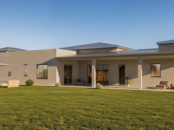 Discover elevated modern living in this custom-built contemporary residence situated on just over one acre in Rio Rancho, New Mexico. Thoughtfully designed as a single-level home, this 4-bedroom, 5-bathroom layout offers a highly functional split-bedroom floor plan that balances privacy, open living, and architectural sophistication.At the heart of the home is a spacious great room featuring soaring ceilings, marble flooring, and an expansive open-concept design that seamlessly connects the living area, dining space, and chef's kitchen. The kitchen is centered around a large island, ideal for entertaining, with ample workspace and clear sightlines throughout the main living areas.