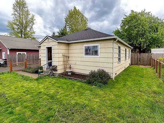 Beautiful home located in Springfield only two blocks from Maple Elementary with easy access to many stores and restaurants. The fenced front yard is lusciously landscaped with multiple clematises, different varieties of calla lilies, and lavender (etc.). There is a lovely, mature apple tree and two sheds located in the huge, fenced backyard. The third bedroom is a detached studio featuring a loft, and it would be perfect for an office, noisy teens, or mom and pop. Expansive driveway has room for an RV and space for multiple cars. New or recently upgraded features of the house: the roof, gutters, front fence, back side of back fence, tub surround, and the kitchen paint and backsplash. Home settled many years back (15+), and there are some existing cracks in the foundation. Selling as-is. Come make this home your own!