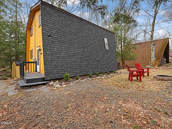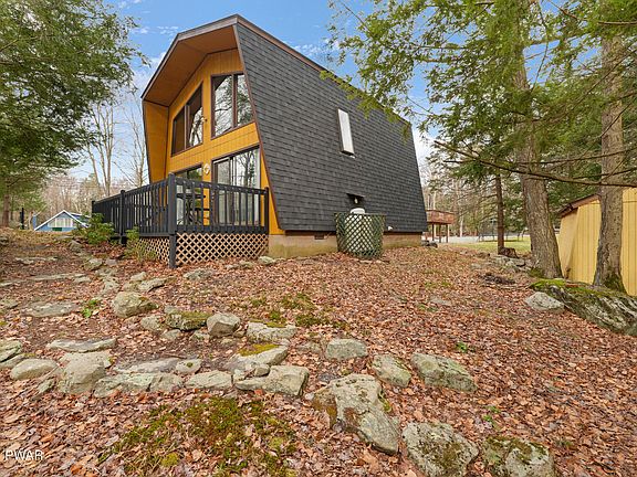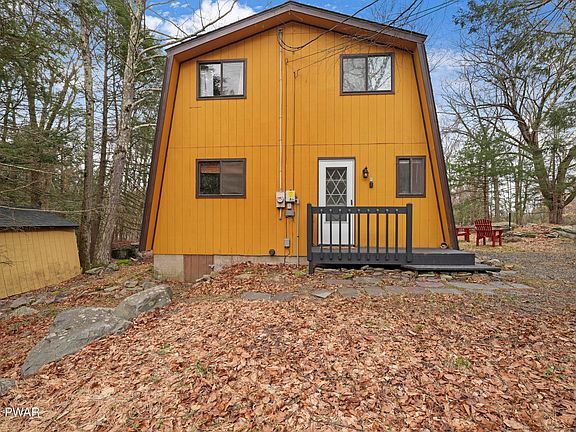 YOUR PERFECT LAKE HOUSE HAS ARRIVED JUST IN TIME FOR SPRING AND SUMMER! Your anything but cookie cutter, 2 bedroom, 2 bathroom Pocono paradise offers you a short walk to the Roaming Woods Lake, in a highly desirable 4 season gated community called The Hideout. Cathedral wooden ceilings, exposed beams, updated floors and original knotty pine floors for the upper level, offer that mountain home charm you have been seeking. Cozy up to a propane stove that helps keep your cabin cozy for friends and family. An open kitchen, dining, living room offers the best layout for keeping the gang together while make memories at the lake! A first floor bedroom offers plenty of room for guests, especially those who prefer not to do the stairs! First floor full bathroom is well appointed! Upper level loft offers more sleeping or flex space in addition to a spacious and beautiful guest bedroom! Community offers modern central sewer and water systems! The community has 3 main bodies of water commonly used for recreational purposes: Roamingwood Lake (198 acres); Deerfield Lake (22 acres); and Brooks Lake (9.2 acres). Also located within the community are Windemere Lake (1 acre); Hidden Lake (1 acre); and Big Springs Pond (3 acres). 24 Hour Public Safety, Gated Entrance, Public Utilities, a Clubhouse, Main Lodge, Campgrounds, 250 Acres of Pristine Woodlands, and a Dog Park. Also enjoy a Recreational Sports Complex, Golf Course, Indoor/Outdoor Tennis, Power Boat Lake, Two Sand Beaches, Two Heated Outdoor Pools, Physical Fitness Center, Mini Golf, Art Center, Woodworkers Building, Ski Lift and Lodge, and Tubing Run. THE LISTING AGENT IS PROVIDING A FREE 1 YEAR HOME WARRANTY TO THE NEW BUYER OF THE HOME. Take the 3D Virtual Tour and schedule your private showing today!