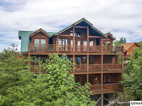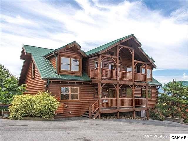 ***RENTAL PROJECTIONS 160K-190K*** 8BR/7BA Log home in a desirable Starr Crest II Resort with such an easy access to all local attractions. Upon entering, you are greeted with MILLION DOLLAR VIEWS, that you can also enjoy from 3 huge decks and throughout the Cabin on All Levels. Eight bedrooms are spread out among its three floors, and each one has a log-style king-size bed and a flat-screen TV. Main level Master has Private Jacuzzi and Fireplace for Romantic Getaway even with a Houseful of Guests. Because "Mountaintop Lodge" is located in Starr Crest II Resort, You and Your Guests will enjoy free access to the resort's outdoor pool in the summer, and year-round you can take advantage of the resort's playground and covered picnic area again with Outstanding Views of the Smoky Mountains. With a set up to Accommodate up to 34 people Including 2 Refrigerators, 2 Large Dining Tables, 2 Hot Tubs, and Dedicated Bunk Area with Great Gaming and Recreation Room; this property is a very Great Money Maker! And with a few New Owner Tweaks this Cabin Could be Even Greater!