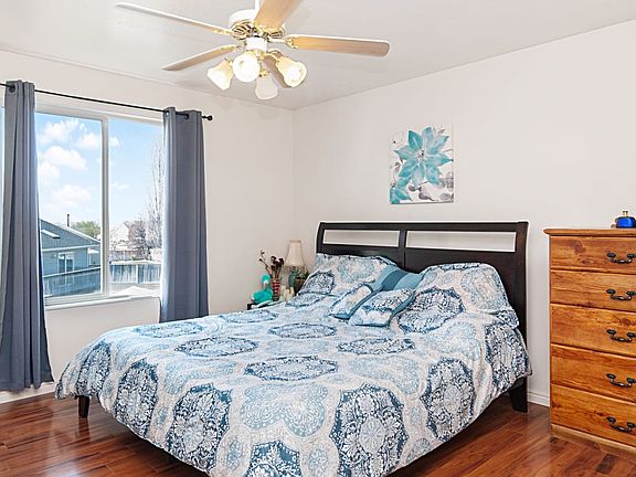 Updated throughout, newer carpet and newly painted. The kitchen has stainless steel appliances, GRANITE countertops, white cabinets, tiled floor. Carpet in 4 bedrooms. Laminate wood in both living rooms and master bedroom. Gray bathroom cabinets with tiled floors. Landscaped yard with mature trees, 2 cherry and 1 pear tree. Pergola on back patio. Fenced back yard. Large 10x12 shed. RV parking on side of the house. Attached garage. Quiet neighborhood. Near Hill Air Force Base.
