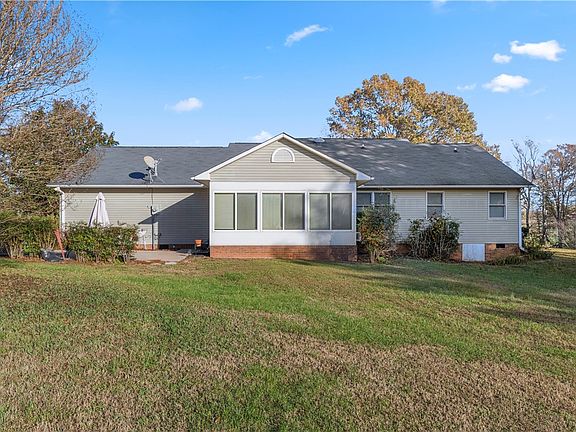 Spacious rural home on 1.5 acres in Central, SC. 3 full bedrooms, 2 full bathrooms, 2 car garage with extra space for storage, and an additional sunroom. Spacious kitchen and dining area are together in one room making it easy for the cook to visit with guests. Many oak cabinets in the kitchen provide great storage. Black appliances convey. Garage door enters the kitchen area for convenient grocery unloading. Cozy living room has a natural gas log fireplace and some built-in shelving. The laundry has its own room with storage cabinets above the appliances. There is a covered front porch that looks out over a large lawn and a good sized closet located inside the front door. The hallway bathroom has a full shower stall with a bench. The two spare bedrooms have generous sized closets as well as built-in corner shelving. The master bedroom has a full bathroom with dual vanity and a full shower/tub combination. This room has a walk-in closet as well. Most of the home has crown molding. Outside of the sunroom area is a concrete patio which is great for grilling and lounging. Two sheds and chicken coop convey with the sale. Appliances convey. Some furnishings may be purchased separately. This home has so much to offer so don't miss out on this opportunity at 1907 Norris Highway in Central, SC.