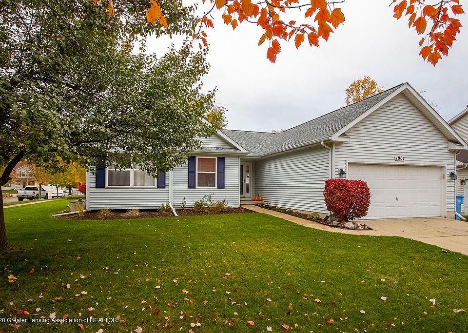 Location, Location, Location! Newest offering in the new Horizon neighborhood within the Holt school district. Over 2,000 sq. ft. of living area in this special ranch style home including the finished lower level. Lovely open floor plan. Beautiful cathedral ceilings in the great room including sliding doors to the 10X28 newer deck. Extra outside storage in the convenient shed. Spacious dining area with a wonderful bank of windows. Well laid out kitchen with an eating bar, pantry, plus stainless-steel appliances. 1st floor laundry and an attached 2-car garage. Enjoy the well laid out primary suite with a walk-in closet and a full bath! Two additional bedrooms and a full bath on the main floor. 4th bedroom with an egress window in the lower level plus a large media family room with space for a study. Do you need more finished space? The storage area is abundant. Newer carpet plus loads of laminate flooring. Enjoy this lovely neighborhood in a convenient location at an affordable price.