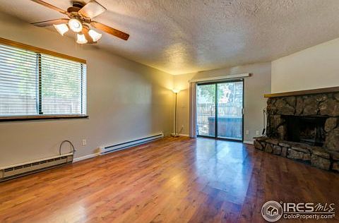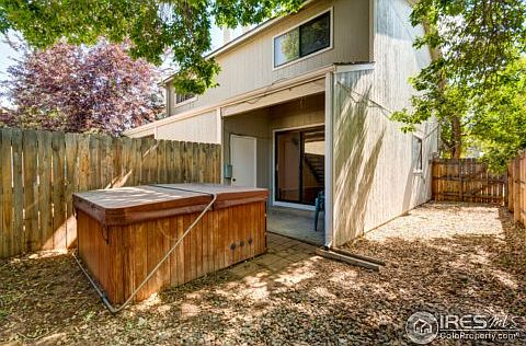 Come and see this charming end unit townhouse style condo in Fort Collins! This is a great opportunity to own near Prospect and Overland. Close to hiking trails and CSU, this location is hard to beat. The home is move-in ready with new interior paint and new carpet throughout. This two bedroom, one and a half bath home has a great open floor plan. The spacious living room features a stunning stone fireplace and beautiful wood floors. The dining room offers plenty of natural light and has a dog door with access to the backyard. The kitchen features lovely tile floors, an ample supply of cabinet space and all appliances are included! Up the stairway is an amazing skylight giving more great natural lighting. Upstairs is host to two roomy bedrooms and a full bath. Enjoy the low maintenance backyard in the covered patio or in the fantastic hot tub. Check it out before it goes! This home could be eligible for a 1% down conventional loan option. Call for details.