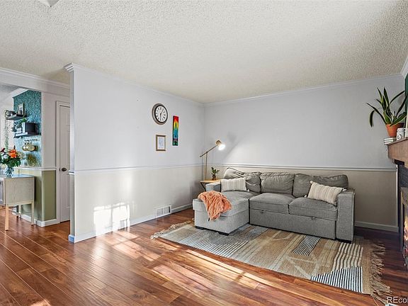 Storybook Charm Meets Everyday Convenience in this End-Unit Townhome. From the moment you step inside, this home feels like a warm welcome. Sunlight streams through tall windows and skylights, dancing across the wood-look laminate floors and creating an effortless, airy vibe. In the living room, a cozy fireplace becomes the heart of the home—perfect for chilly evenings—and leafy views peek in from the outside. Just around the corner, the kitchen balances form and function with crisp white cabinetry, stainless steel appliances, and a convenient laundry nook nearby. A cheerful coffee station with playful wallpaper adds a personal touch and a pop of color. Upstairs, vaulted ceilings and skylights continue the bright, open feel. The primary suite offers a peaceful place to unwind, with French doors, a vanity area, and space to create a calm retreat. Down the hall, another light-filled room is ready for guests, a home office, or your favorite hobby. Step outside to your private front patio—perfect for a quiet morning coffee or string-lit summer nights. And when the snow falls? Just head straight into your attached garage with interior access (no shoveling needed!). There’s even bonus storage on the lower level to tuck away seasonal gear. New roof, HVAC + hot water. Tucked into a peaceful, well-kept community close to parks, shops, and RTD access, this sweet space blends charm and convenience in all the right ways. Virtual tour available.