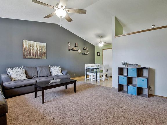 You are going to love coming home every day to this beauty in Goddard Schools! Well maintained, great curb appeal and neat as a pin. This 3 bedroom, 2 bath ranch boasts a large living room with vaulted ceiling; dining area with bamboo flooring; kitchen with very cool pull out spice rack; large family room in the basement along with 3rd bedroom and bath. The back yard is fully fenced (wood privacy fence) and includes patio and fire-pit. The cul-de-sac is great for the kiddos, and home is conveniently located to highways and shopping. As an added bonus all the appliances remain with the home, including the washer and dryer. Schools are as follows: K-4 Clark Davidson; 5-6 Challenger; 7-8 Goddard Middle; 9-12 Goddard High.