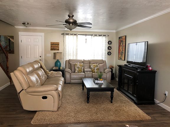 This is the perfect home for anyone-whether your kids need a safe place to play or you’d like some peace and quiet as the sun is setting after a long day at work. This beautifully kept home is situated on a quiet street in Heber Landing, and is well-appointed with many updates: it has everything you need, plus several upgrades. The master bedroom is on the main level with two additional bedrooms upstairs-one of which even has an amazing view of Timpanogos! There is new flooring and moulding throughout the main level, as well as heated tile in the kitchen and bathroom. The open concept kitchen/living/dining area is spacious and great for entertaining with a patio right off the dining area, extending your space. Brand new hot water heater, central air, garbage disposal and refrigerator with fixture updates such as faucets and lighting fixtures throughout. The yard is fully fenced and lawn is immaculate, with great privacy as the yard backs up to the never to be built on Greenfield subdivision common area. There is a two-car garage with a small workspace in front of one bay with built-in cabinets, as well as three parking spaces outside of the garage. This home is a must-see in a quiet area. This home is being offered for sale by owner (please-no listing realtors) though we will entertain a buyers realtor.
