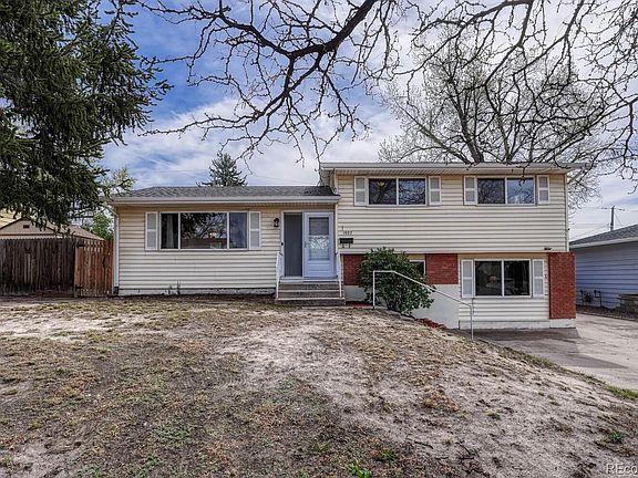 This charming split-level home has 4 bedrooms, 3 baths, a detached 2 car garage with mountain views! The main level includes an updated kitchen with walk-out access to the fenced in backyard oasis. Dining room and family room with amazing wood floors and window treatments throughout. Upstairs you will find the primary bedroom with attached bath, 2 spare bedrooms, a full bath and plenty of storage. Lots of natural light and great views of Pikes Peak. On the lower level is the 4th bedroom, a large family room, full bath, laundry area and a ton of storage in the crawl space. Detached 2 car garage, plus plenty of parking on the driveway. Lots of updates: New paint, updated fixtures in bedroom and basement bathrooms, new fence in backyard, ceiling fans in master, spare bedroom, and dining room, new washing machine, new front storm door, newer roof, installation of vapor barrier in crawl space, updated HVAC registers and new refrigerator. Close to downtown, easy access to shopping, schools and entertainment.