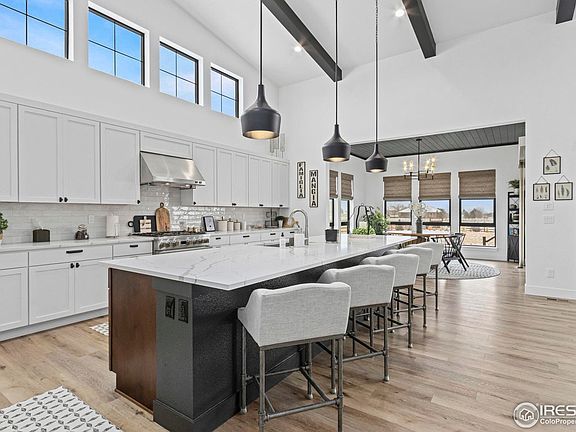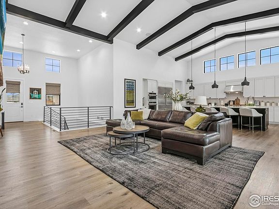 Discover an extraordinary opportunity in Acadia at Raindance to own a stunning custom-built home set on a sprawling one-acre lot, where luxury, privacy, and craftsmanship comes together in an experience that is truly unparalleled. From the moment you arrive, this residence makes a statement with striking floating concrete steps leading to a private, gated front patio. Inside, soaring ceilings are enhanced by stately custom beams, a dramatic fireplace, and expansive stacking slider doors that open to a phenomenal heated outdoor living space. Enjoy year-round entertaining with an outdoor cook station, covered pergola and uncovered patio. The kitchen is truly a work of art, perfectly sized and thoughtfully designed for the discerning chef. Features include a 60" GE Monogram refrigerator and freezer, a stunning 6-burner GE Monogram gas range anchoring the kitchen, and a show-stopping island with seating for five. The Primary Suite is a private retreat, highlighted by a spacious walk-in closet, an extra-deep freestanding soaking tub, and a large upgraded walk-in shower with poured pan tile, custom wall tile. The main level also includes two additional ensuite bedrooms, office space and flexible bonus room, a laundry room, and a powder bath.The finished lower level offers a wide-open living and gaming area complete with a ping pong table included, plus two additional bedrooms, a full bathroom, and abundant unfinished storage space. Beyond the home, the lifestyle is unbeatable. Cruise by golf cart to the renowned RainDance National Resort & Golf Course, or head to Hoe Down Hill, Northern Colorado's premier snow park offering skiing, snowboarding, and tubing-just three minutes away. Enjoy miles of parks and trails, including the Poudre Park Trail, and easy access to local restaurants and coffee shops.