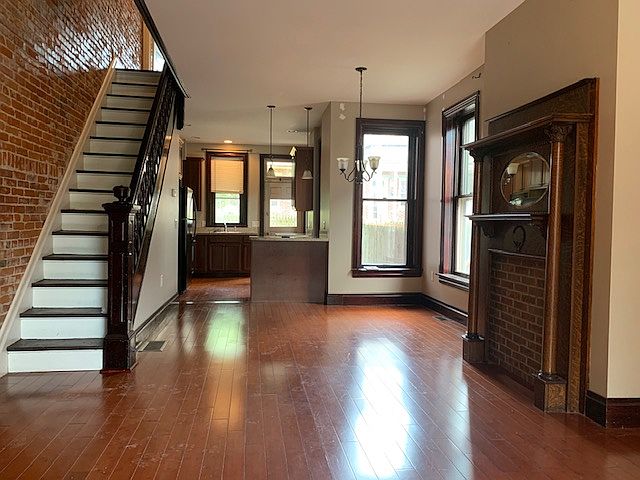 Large, historic 3 bedroom, 2 bath home in Olde Uptown! Fully renovated with exposed brick, original woodwork and fireplace. Full kitchen appliance package including dishwasher and garbage disposal. Second floor laundry. Third floor features a suite with walk in closet. Central air, gas heat, security system and parking space in private lot. Front/rear porches, 2nd floor balcony porch and enclosed, private back yard. Full basement for storage. Lease term is 12 months. Tenant pays all utilities. Cat or small dog permitted. Application fee is $25/pp and includes credit/criminal history check.
