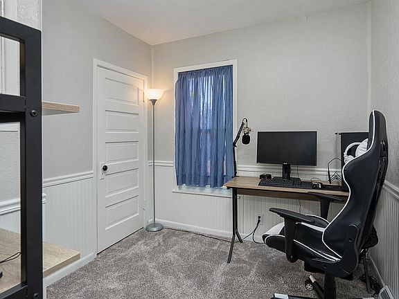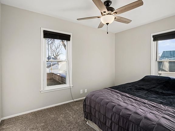 This nicely updated 4 bed 2 bath home has new paint and flooring throughout. From the moment you enter the foyer you will notice the unique characteristics of this home. The large windows in the living room give natural lighting and flows into the dining room. The built in hutch and nook give this room extra storage and other creative opportunities. The bright eat in kitchen has professionally painted cabinets, access to the sunroom and a second bathroom. The appliances stay with the home including refrigerator, stove, and dishwasher. The upstairs has 4 bedrooms with new carpet and paint, a full bath and storage closet. There is a staircase to an unfinished attic that could potentially be converted to another level of this home. The laundry is in the unfinished basement. This home features a patio and fenced in backyard with 2 car garage accessible from the alley and a parking slab on the frontside of the home. Call for your showing today!