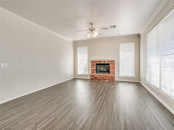 Welcome home to the quiet, family friendly Woodcreek Addition. This well cared for 2 bedroom, 2 full bath Townhome, on corner lot, is move in ready with new flooring, fresh interior paint (in living room & bedrooms) and desirable open floorplan. Primary suite is spacious with oversized bathroom, double vanities, shower, tub, and large walk-in closet. Primary suite also has direct access to a cute patio space to wind down after a long day. Keep your vehicles safe in the oversized 2-car garage with work bench area. Enjoy use of the clubhouse and pool right outside your front door (included as part of the HOA dues). HOA maintains yard and common areas. However, the new owner has full control over maintaining the beautiful professional landscaping that surrounds the home. Walking distance to UCO, grocery store & restaurants. Book your private showing today!