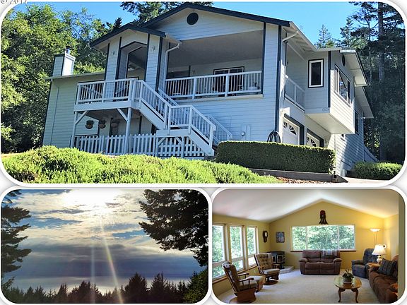 Spectacular ocean views! Perched at the top of Sunray Lane, this one-owner, quality custom home offers unparalleled craftsmanship & exceptional amenities. Master w/ensuite bath & private door to yard w/hot tub. Covered deck, patios & private yard offers extended outdoor living space. Shop w/full bath, RV/boat storage & room to grow. Immaculately kept with NEW exterior paint. Stairs lead to hiking trails and 2 creeks on property!