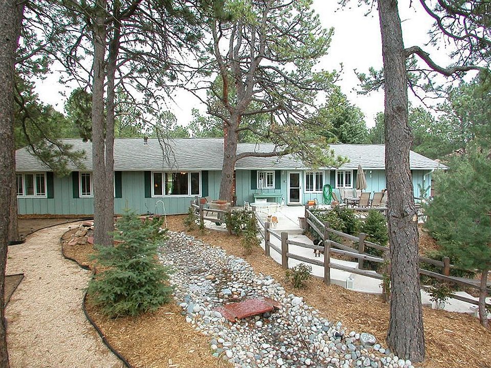 Main Level Living!Totally remodeled Woodmoor Rancher.Generous room sizes throughout.Newer kitchen w slate floors,style stone counters newer appliances,large walk in pantry and eating nook.All baths redone w/slate foors.Beautiful hardwood floors throughout, Large master w/3 closets and huge bath w jacuzzi tub.French doors, vinyl windows graced by plantation shutters,2large concrete patios,13x11 workshop,Over 1 acre of stunning treed landscape w waterfall feature, on demand hot water, 2 furnaces.Perfection!