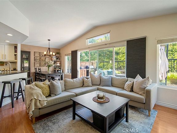 BEAUTIFUL SINGLE LEVEL HOME SITUATED ON A PREMIUM CUL-DE-SAC IN THE DESIRABLE SYCAMORE RIDGE COMMUNITY OF PORTOLA HILLS! Soaring ceilings and an updated kitchen compliment this light and bright open floor plan. Enter into the spacious living area with an exquisite stone fireplace and large sliding doors to serene outdoor living. This generously appointed 3 bed, 2 bath offers countless upgrades and easy living. The primary bedroom with vaulted ceilings, dual closets, slider to private patio, and a recently updated primary ensuite. Additional highlights include remodeled kitchen and bathrooms, recessed lighting, quartz countertops, and private outdoor living perfect for family gatherings. Enjoy the resort-like community amenities with tennis, volleyball and basketball courts and lap pool. Nearby Concourse Park, Lake Forest Sports Park, hiking and biking at Whiting Ranch and Cook’s Corner. Nature and city living come together perfectly! LOVE WHERE YOU LIVE!!