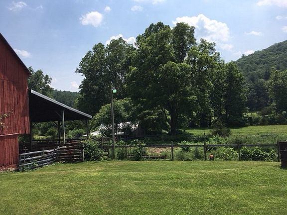 Small farm with wooded and open fields, partly fenced, small mt. stream meanders through the property. Lots of farm buildings for critters and equipment. Great hunting also.