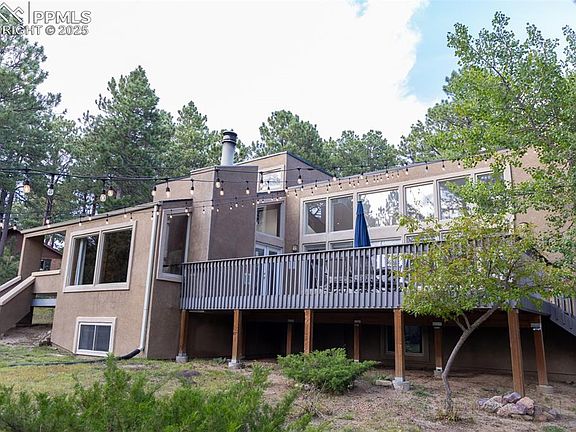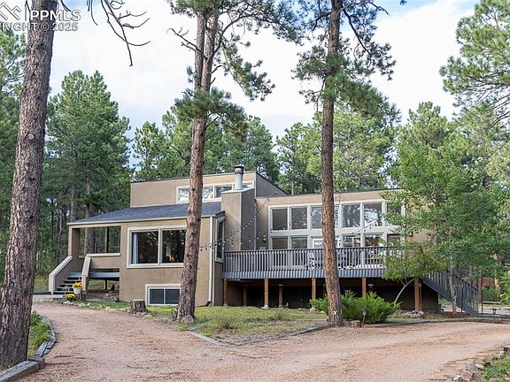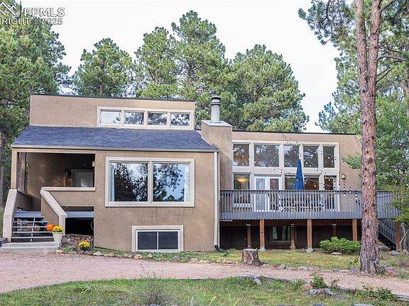 Welcome to your private retreat in the trees! Nestled on nearly an acre in the desirable Woodmoor neighborhood, this 4 bedroom, 4 bathroom home offers over 2,800 square feet of comfortable Colorado living. Surrounded by a serene forest setting, this property combines peaceful seclusion with unbeatable convenience to I-25, shopping, schools and the U.S. Air Force Academy. Step inside to find a warm and inviting living room with a classic Colorado fireplace, vaulted ceilings, loads of storage and west facing windows that fill the kitchen and dining room with natural light. The private upper level primary suite boasts a spacious walk-in closet and a luxurious bathroom, while the finished basement features its own mini-suite with tongue-and-groove ceiling detail, plus two additional bedrooms. Enjoy the outdoors with a large composite deck, covered entry deck and even a treehouse tucked in the pines. Recent upgrades include a Class 4 roof (2023), central A/C (2020), Nest thermostat, updated appliances and dual laundry spaces (appliances stay). With a two car attached garage, covenant protected neighborhood in the heart of Monument and close to north Colorado Springs this home is the perfect balance of charm and modern convenience.