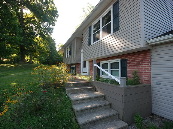 Looking for a modern, traditional home on a private, country setting with a large yard? This is it. Main floor has 3 nice size bedrooms, living room with french doors to large covered deck. Main floor also features eat-in kitchen and a full bath with low step-in shower. Lower level ( not basement, each room has windows above grade for natural light) has a large "L" shaped family room, full bathroom and a bedroom. Part of family room could be easily made into a 5th bedroom if needed and family room would still be large. There's a Wood-burner chimney in this room too. Laundry room has hookup for both gas and electric dryer. Oversized 2 car attached garage. Generac whole house generator. Roof about 8 years ago w/dimensional shingles, Windows about 4, Siding in 2015. Public water and usable well also. ** Parcel ID is for 86 acres. House has been surveyed off with 8 ACRES but not recorded yet. Will have new parcel ID at that time. Taxes were $2100+ with all 86 acres so $1500 is an estimate.