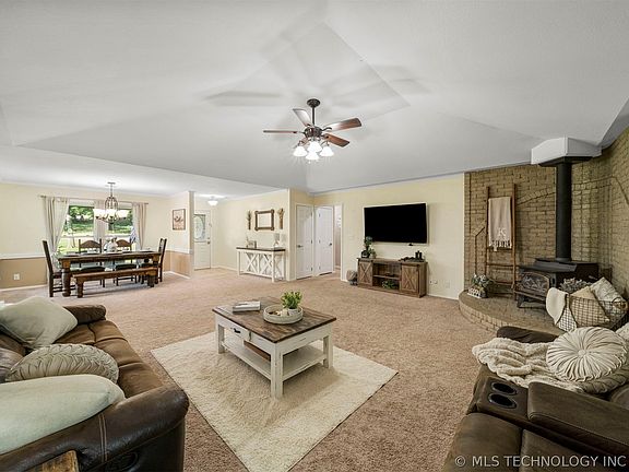 CHARMING 4-Bedroom home on a private road is nestled on 3.37 acres & offers the perfect blend of privacy & convenience. This spacious, open concept home features 3 bathrooms, dining rm, & TWO master suites (one w/a private entrance & another w/dedicated office). Home boasts a range of modern amenities including: NEW Int paint (LR, Kitchen, mud room, laundry room), Geothermal heat/air, remodeled kitchen w/gorgeous quartz countertops, tons of cabinet/storage space, NEWER roof w/impact resistant shingles (Spring 2020), NEW refrigerator (Dec 2023) & NEW dishwasher (Feb 2024). Enjoy the convenience of a NEW dryer (2023), NEW dog run (2022), & NEW firepit (2022). Outdoor enthusiasts will LOVE the 24x24 shop, 9x12 shed, & 12x20 barn/stable, making this property ideal for horse lovers. The beautiful landscaping & custom patio w/stamped concrete also provide a serene outdoor retreat. This home truly has it all—modern comforts, space for hobbies, & room for your chickens & horses. Don't miss out on this incredible opportunity to own a slice of paradise.