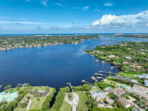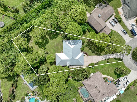 Live your best life in this beautifully renovated gem in the heart of Jupiter on a private 1/2 acre cul-de-sac lot with exclusive access to the Eagle's Nest community private boat ramp & launch area. Eagle's Nest is a charming 64 acre boating-friendly community consisting of only 98 homes with low HOA fees where homes rarely become available. Single-level floorplan with 3 bedrooms, 2 baths and open concept living. The split floorplan offers 2 spacious guest bedrooms located at the opposite end of the home from the expansive primary suite. Live comfortably with the 2023 metal roof and impact glass windows and sliders. The kitchen is dreamy with beautiful quartz countertops, a marble backsplash, white solid wood soft-close cabinetry, porcelain tile flooring & stainless steel appliances. A large pantry storage/flex area is located off the kitchen along with a separate laundry room. Gather with friends and family in the spacious great room with soaring vaulted ceilings, hardwood floors and a cozy fireplace. All bedrooms and living area boast solid hardwood floors. Rest peacefully in the primary suite featuring 2 walk-in closets and spa-inspired renovated bath with dual quartz vanities and a walk-in shower with a frameless glass enclosure. The outdoor living area is accessible via the 3 sets of impact sliding glass doors which all pocket behind walls to give you a seamless connection with the outdoors. Relish the stunning sunsets and extreme privacy from the large screen-enclosed covered patio with tongue & groove ceilings. The backyard is tree lined with plenty of room for a future pool. Mature tropical landscaping plus mango and banana trees! A convenient 35' boat pad is located adjacent to the garage. This prime location in Jupiter is conveniently located near all the amazing beaches, A-rated schools, parks & nature preserves, shopping, restaurants, entertainment and activities the area has to offer. Welcome home!