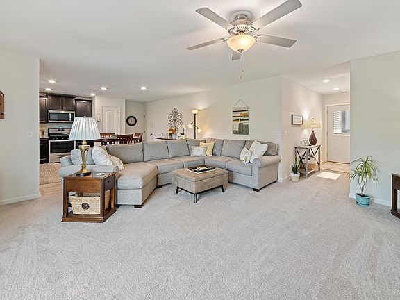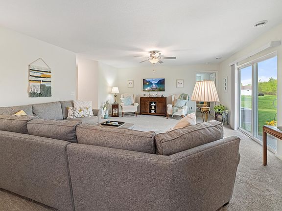 Main level living at its finest. Watch the morning sunrise on the east facing concrete patio overlooking the pond. Escape to the private primary suite with full bathroom. Cook like a pro in the kitchen with nearly new appliances and overlooks the level backyard! Just off the kitchen is the comfy living room with patio door to the rear porch. In the 24' deep attached garage big enough for a large vehicle, there is still so much storage space! So many upgrades since 2021! The new gutters are essential for directing rainwater away from the foundation and ensuring proper drainage. The new front door and storm door enhances the curb appeal and offers increased security and insulation. The new water softener is beneficial for improving the quality of water throughout the house. Never drag the hose around again with the in-ground sprinklers that automates watering the whole lawn!
