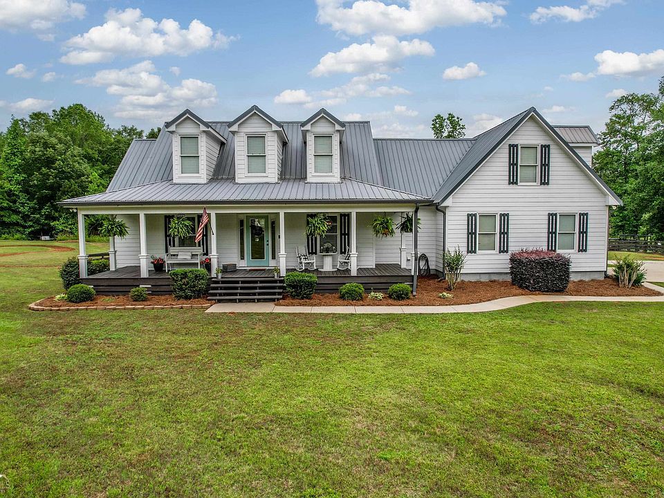 Gorgeous 5 acre property with stunning farmhouse! Excellent pasture land great for the kids or any animals to roam. The home is situated perfectly and tucked back away from the road. Enjoy the Southern style wrap around porch as you watch the sunrise with your coffee. Property is fenced in and has a shed, a chicken coop, and a turn track. Home has been repainted and has concrete siding and a metal roof! Newer HVAC system! Hardwood floors throughout the entire main level. Excellent layout featuring split bedroom ranch plan with a bonus bedroom upstairs. Formal dining room but could be great for an office. The Kitchen has white cabinets, granite counters, designer backsplash, and opens to the living room and breakfast area. Beautiful views to your private backyard. Living room with vaulted ceilings and shiplap fireplace. Primary bedroom with newly renovated bath to include herringbone floors, subway tile shower, claw foot soaking tub, and custom wood walls. Large newer back deck with built in seating great for entertaining and enjoying nature. 2 car side entry garage. Close proximity to downtown Monticello and an easy commute to I-20.