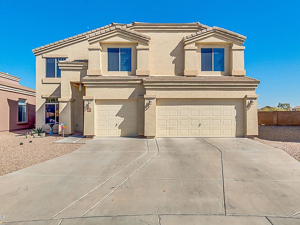 LOWEST $/SF OF ANY HOME IN MARICOPA!! Incredible 7-bedroom home with 4 full baths on a premium lot. HUGE upgraded kitchen with raised panel cherry cabinets, granite counters, and stainless appliances including the fridge. There's no shortage of storage with 28 cabinets, 14 drawers, and a pantry. Large tile in all the wet areas with neutral paint and carpet throughout. Every room has 2-inch blinds and ceiling fans. The floorplan has a large bedroom and bath downstairs, perfect for guest or in-laws, and upstairs are 6 more bedrooms plus a loft. The master bedroom is about 400sf, and the en suite bath has double sinks, and separate shower and soaking tub. The backyard is landscaped with grass, perfect for a large family, and there are no neighbors behind for extra privacy. See it today!