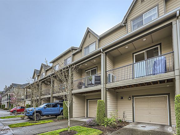 Lake Views! One of the few units with unobstructed views and A/C. Possible 3rd br/flex room. Some use it as open 3rd guest bedroom w/ closet and private bathroom. A/C mini splits on main floor & upper two primary suites. Better than new because it's ready for you to move in !Lots of natural light w/ high ceilings & neutral color pallet & finishes. Enjoy the outdoors on your private deck on warm days and cozy up near the fireplace during cold days. Beautiful hardwood floors on main floor. Gourmet kitchen includes stainless steel appliances, gas stove,island & nook. Perfectly located within steps to Silver Lake, minutes to freeways,Costco, restaurants, Boeing transit & Mill Creek Town Center. Community has gated entry, park,& sports court.