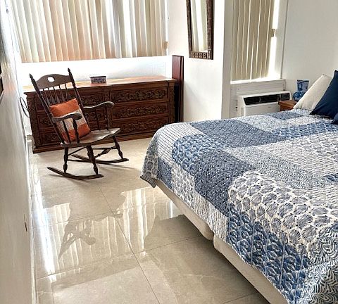 Beach front condo apartment in the Condado. High floor unit with spectacular city views. Fully air conditioned (A/C), furnished and equipped; two bedroom, two bath. Within walking distance of hospitals, schools, shopping and restaurants. 24/7 security guard building with two swimming pools, tennis court and gym. Must see to appreciate. Long term rental ONLY. Minimum of 6 months rental required. Owner will provide rental application and rental contract. NO SHORT RENT RENTALS. Minimum of 6 months rental accepted.