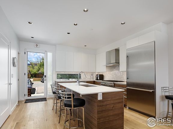 HUGE PRICE IMPROVEMENT: Experience breathtaking views from nearly every room in this exquisite 2019-built luxury condo. Nestled within The Mark on Pearl, an exclusive enclave of 8 luxurious residences along Boulder's renowned Pearl Street in Downtown Boulder, this West-facing gem offers unparalleled convenience steps away from world-class dining and shopping. This exceptional 3-bedroom, 4-bathroom residence with a rare one-car attached garage (only two units offer this feature) presents an inviting open floor plan adorned with luxury finishes and cutting-edge smart home technology. The gourmet kitchen offers top-of-the-line Thermador appliances, custom cabinetry, and sleek Caesarstone countertops.Retreat to the sumptuous owner's suite featuring a generous walk-in closet and a lavish ensuite bath boasting a walk-in shower. Step out onto the expansive deck and savor your morning coffee while soaking in the majestic Flatiron views. Entertain in style with multiple private outdoor spaces, including a rooftop deck offering 360-degree vistas, ideal for hosting afternoon gatherings and BBQs with friends.This home is equipped with state-of-the-art amenities, including frame TVs in most rooms and custom home automation for seamless control of lighting, climate, and security systems-all accessible at the touch of a button or remotely via smart phone.Embrace the outdoors with hiking trails and Boulder Creek right at your doorstep, completing the ultimate Boulder lifestyle experience.