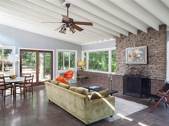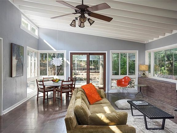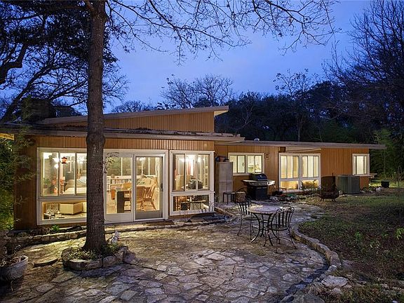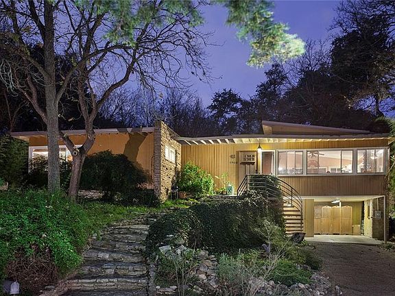 Rare opportunity: A.D Stenger, Architect - Mid-Century Modern home on large quiet cul-de-sac lot in Barton Hills, minutes from downtown, close to Zilker Park, Barton Springs, and green belt. A stone fireplace anchors the living room, and large windows on all sides connect the open plan to the outdoors and flood the interior with natural light. Original details, handmade tile, and stacked stone walls. Huge, almost half an acre lot is lush and shaded by large mature trees. Great schools. Don't miss it!