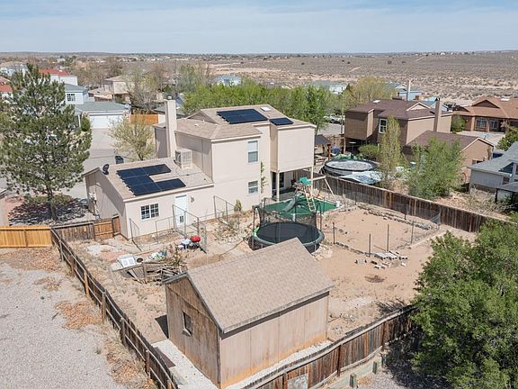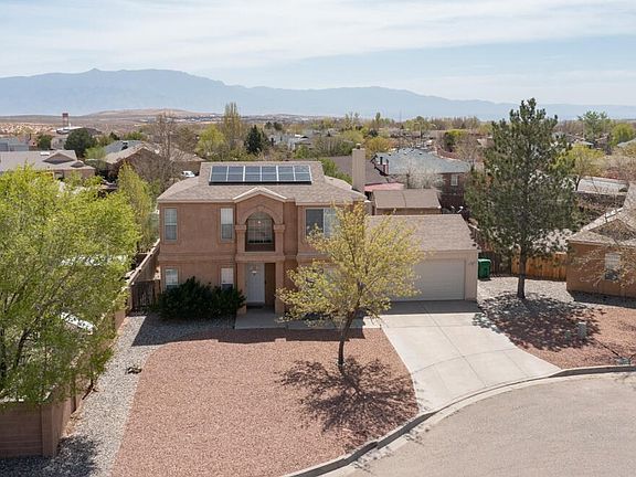 Welcome home to this 3 bedroom 3 bathroom home nestled in a Cul De Sac located in North Hills Rio Rancho. Owned Solar here, so be sure to check out the energy savings. This two story home has the perfect floorplan. Downstairs you will find the beautifully update kitchen and all the entertaining space you could need. Upstairs you will find your three bedrooms, guest bath, and spacious Master suite. The backyard is ready for your imagination. Come see this popular floorplan today!