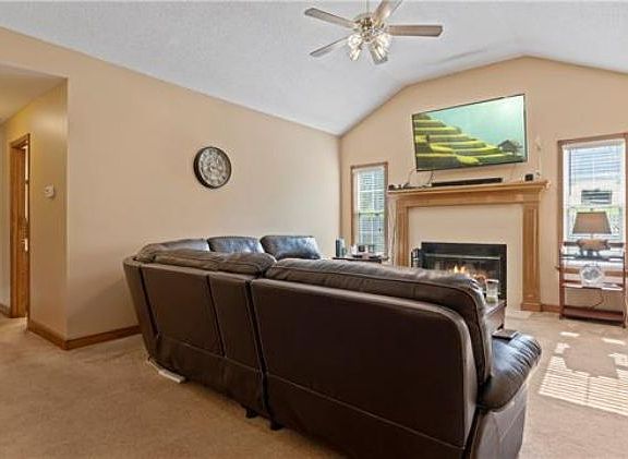GREAT HOME WITH LARGE ROOMS, AND SOLAR POWER. This raised ranch with Covered Front Porch has a Large Great Room with a Vaulted Ceiling, Wood Burning Fireplace, and nice natural light. The spacious Kitchen Dining combo with access to the Outdoor Deck has plenty of daylight and can accommodate a large table and seating at the counter. There is a separate Pantry, and ALL Appliances, including the Washer and Dryer stay. The Laundry Room is conveniently located right off of the kitchen. The oversized Main Bedroom has a Vaulted ceiling, Walk-in Closet, an Additional Closet, Separate Bath, and Access to the spacious Back Yard. Two additional Bedrooms and a Full Bath finish out the main level. The lower level has a Huge Recreation Room with Plenty of Storage and a Half Bathroom. The full 2 car Garage is Extra Deep. The back yard has a Newer Deck and Fence and backs up to Greenspace making this a great home for entertaining. The Solar Panels ($22k) were installed in 2020 and make a positive impact on the energy costs for this home. Solar Panels have a transferable warranty. This home is being sold as is. It needs exterior paint, and flooring, but otherwise is in great condition. Home also comes with a transferable home warranty.