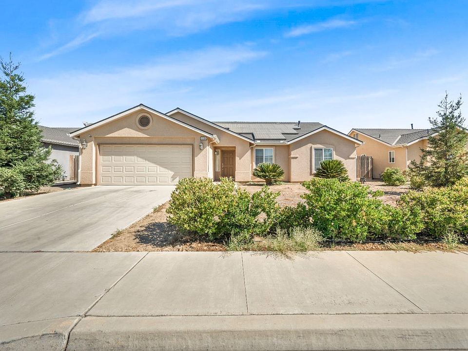 Welcome to this charming 3-bedroom, 2-bathroom home with Owned Solar, ideally situated just a short drive from neighborhood parks, schools, and local favorites like Kings River Winery. Step inside to discover a spacious living room that seamlessly flows into the backyard through a sliding glass door, offering a bright and airy atmosphere. The updated kitchen features elegant granite countertops, rich wood cabinetry, and sleek black appliances, and opens into a cozy dining area. Adjacent to the kitchen, you'll find a convenient laundry room and access to the 2-car garage. Each bedroom is generously sized with ample closet space, including the primary bedroom, which boasts a private bathroom and a walk-in closet. The expansive backyard is a blank canvas, complete with a covered patio, ready for you to design your perfect outdoor retreat. This move-in ready gem is a must-seecome envision your new life here!