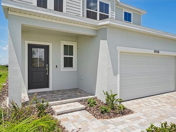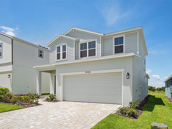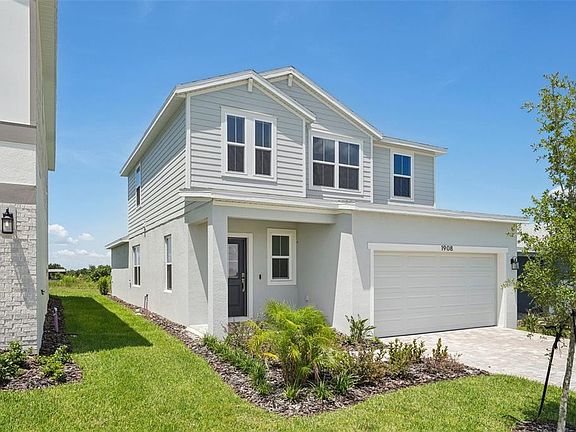 Ready Now! Introducing the Jupiter model —a thoughtfully designed two-story residence that seamlessly blends modern elegance with functional living spaces. This home features 4 bedrooms, 2.5 bathrooms, and a loft, offering ample space for families and entertaining guests. Upon entering, you're greeted by a soaring two-story foyer, creating an immediate sense of openness and grandeur. The open-concept floor plan connects the living, dining, and kitchen areas, fostering a warm and inviting atmosphere. The kitchen is a chef's dream, equipped with gray cabinets, quartz countertops and a large island, providing both style and functionality. The primary suite serves as a private retreat, featuring a spacious bedroom, a walk-in closet, and an en-suite bathroom with dual sinks and a separate shower. Upstairs, the loft offers additional living space, ideal for a home office, playroom, or media center. The remaining three bedrooms are generously sized, sharing a well-appointed bathroom. Step outside to the covered lanai, perfect for outdoor dining and relaxation, extending your living space into the beautiful outdoors. Additional features include smart home technology, tile flooring in main living areas, and a two-car garage. Experience the perfect blend of comfort, style, and functionality in the Jupiter model—a home designed to meet the needs of modern living.