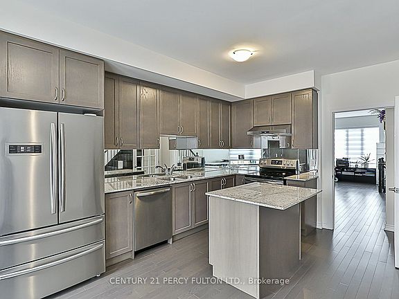 NO BIDDING, REAL PRICE!! Very attractive 3+1 Bedrooms with 5 Baths (3 Ensuites & Walk-In Closets) Townhome (1,842 sq ft MPAC) in Markham - Cornell! House Features: BRAND NEW Professionally finished basement (rec. room) with sub-floor underneath/wood flooring and 3 pc bath, pot lights. Stained Hardwood Floors Throughout Main & Second Level, 9 ft ceiling on Main. A Stunning Kitchen with Island and Eat-In Breakfast Area over looking backyard, Granite Counter Tops, Stainless Steel Appliances, Mirrored Backsplash & Upgraded Cabinets from builder. Main floor with a bedroom (can turn into a living and dining) with a powder bath, 2nd floor with Family Room, Smooth Ceilings Throughout, Stained Oak Staircase W/Iron Pickets, Laundry Chute (extra convenient), 2nd floor Large Laundry Room. Fully fenced backyard, Single car garage plus driveway (1+Horizontal = 3 parking spaces), next to visitors parking pads, Brand NEW updated roof, $$$ Frameless Storm Door in front entrance, Zebra Rolling Shades through out!