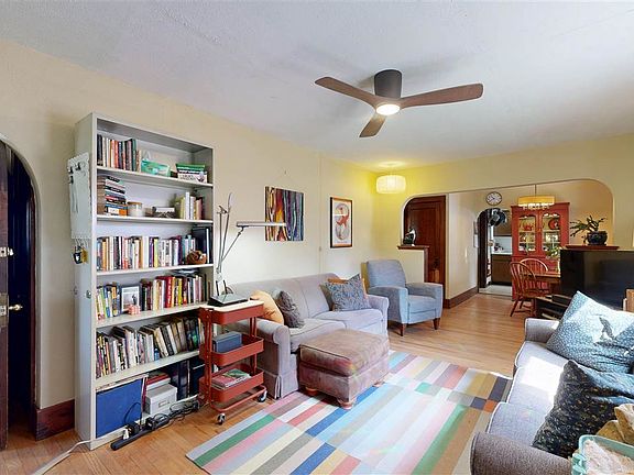 So cute! This eastside charmer is so sweet with its little front porch, arched doorways, wood floors and even a picket fence. The main floor living room is open to the quaint dining room, creating a versatile space for relaxing or entertaining. The L-shaped kitchen opens to the side deck and backyard. The main floor also has two of the bedrooms and a full bath. The upstairs loft adds a great flexible space that can be a bedroom or make a fabulous office or studio. The unfinished walk out lower level has great storage space and has been used as an office. The fully fenced in yard is a blank slate for your gardening dreams. The home owners have lived in the home since 2012 and then bought it in 2017, taking loving care of it. Roof on the house was replaced in 2012 and the roof on the shed was replaced in 2025. Radon mitigation was installed in 2016. All new HVAC in 2020. The portable A/C unit upstairs conveys with the home and is used as auxiliary air.