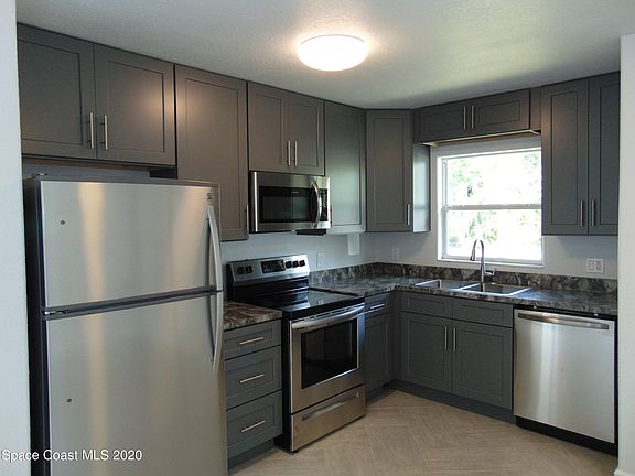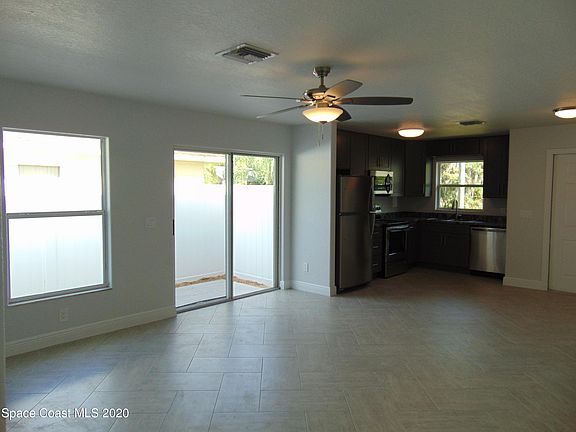 Available now! So Fresh and Clean! Home built in 2010. Newly herringbone tiled throughout, this two bedrooms, two full baths and a one car garage with opener. Open floor plan, tile throughout! Kitchen with dishwasher and built-in microwave. Master walk-in closet, Side fenced patio. Stackable washer & dryer included as well as lawn mowing. Just outside Historic Downtown Melbourne
