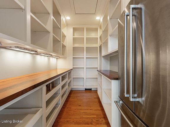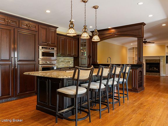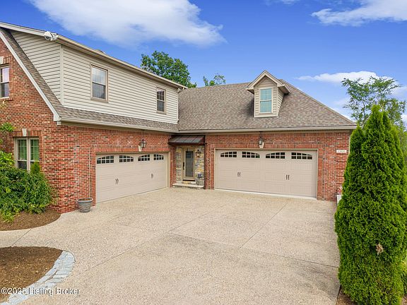 You will not want to miss this stunning brick home perched at the top of the highly desirable Park Ridge Estates in south Louisville. This home has had $500,000+ in additions and upgrades since it was built and has tremendous WOW factor. Come see the jaw-dropping kitchen with wall-to-wall custom cherry cabinets offering roll-out drawers, a massive granite island, in-kitchen fireplace with stone surround, Thermador appliances complete with hidden fridge, gas range, two Blanco ceramic sinks, stone backsplash, and an amazing deep, walk-in pantry with a second full-size refrigerator. Several years ago the owners built an addition on to the home that added a second garage as well as the pantry, a formal dining/wine room with tall vaulted ceilings, a built-in wine bar, and a brick floored mud room that offers built in spaces for a kennel and a litter box, this also added space in the basement and a John Deer garage/storage at the back of the house. On the main floor you will find beautiful hardwoods running throughout, the laundry room (with chute from above), a large living room with built-in fireplace and book shelves, and tons of high end trim work running throughout. There is an office space and the entry was replaced with a solid wood entry with beautiful ironwork in the glass and beaming side lights. Head up the stairs to four of the bedrooms, three of which have recently had new carpet installed. The extra-large primary bedroom has beautiful elevated views of the woods in the back and offers a walk-in closet on each side. The primary bathroom has beautiful marble tile floors, a free-standing tub, double opposite vanities, and a spacious glass subway-tiled shower. Rounding out the upstairs you will find three other spacious bedrooms, and a pass-through full bathroom. As you come down the steps to the walkout basement, to one side you find a space that would be perfect for fitness equipment, and on the other you find the exquisite steam shower bathroom with a fancy shower setup and custom granite vanity. Around the corner you come across a very nice wet bar with granite counter, custom cabinetry, and sink. There is a large 2nd living room with fireplace and built-in surround sound. In the back, you will find a large 5th bedroom with walk-in closet. Behind the mirror in the closet there is an area for an anchored gun safe to be hidden. On both levels of the home you will find one of the finest decks that money can buy. They are constructed with Ipe Decking which is one of the longest-lasting hardwoods in the world. Half of the upper-level deck is enclosed with remote-controlled phantom screens with another fireplace, and there is a beautiful built-in grill just beyond the covered portion. The views are spectacular and seasonally you either have a backdrop of trees or once the leaves fall, you can enjoy the elevated views of the city. The lower deck level has a section that was prepared with electrical and supports for a built-in stationary lap pool or a hot tub. While the lot is over 0.6 of an acre, it backs up to HOA space, so it feels much larger. There is a fire pit area beyond the deck and this home really is perched above the majority of the neighborhood with stunning views. There is a large drywall finished storage area on the back of the home where you could park your riding mower or simply use it for added storage. This home is just a few minutes from Iroquois Park and a myriad of restaurants and shopping. Come see the best of what Park Ridge has to offer. Call now for your private showing.
