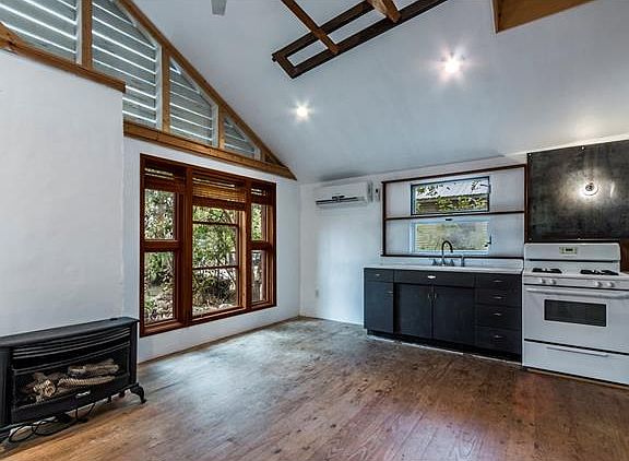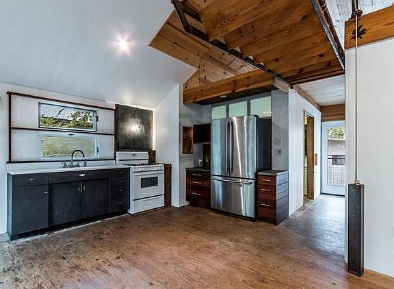 This is one FUNKY, COOL, ECLECTIC property. The front house is a 595 sqft creative living space. It has a small bedroom, 2 living room areas, a full bath, a half bath and a second level loft space. The back house is a 350 sqft (approx) converted garage efficiency. Also, there's 50 sqft work space in the back of the lot. The lot has alley access. If you are looking for that funky East Side home... this is it!