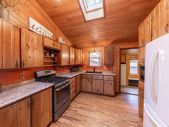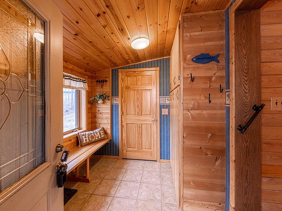 Watch the sunrise through the large windows overlooking Long Lake and the Chippewa National Forest and your private 225 feet of shoreline. With multiple types of wood throughout and unique slanted ceilings, this home has an artistic flair. Your 2 bed/2 bath home has several walk-outs leading you to stone patios that guide you to the lake and a level area for family get-togethers. The main level has several sitting areas with grand views of the lake and 2 gas fireplaces to cozy up to on chilly MN days. The kitchen is quite large with ample cupboard space and a skylight that brings the outside sunshine in. The main bedroom has its own door to the lake and is great for viewing the area’s wildlife. There are several out-buildings, including a wood shop and large garage. Both the wood shop and large garage could be converted into guest areas. Additional 13 acre parcel that includes a 26x44 garage, with lakeshore on Long Lake and Kego Lake can be purchased for an additional $299,900.