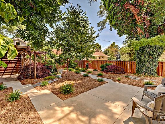 Set along a historic trolley route, this classic craftsman bungalow and guest cottage is surrounded by stately homes and mature trees on one of Boise’s most treasured North End streets. The warm interior features abundant windows, newly refinished hardwood floors, and timeless original cabinets and built-ins. The footprint has been enlarged to include an elegant main-level primary suite with an en-suite bath, w/i closet and direct patio access. A lower-level studio offers a kitchenette, family room, updated bath, utility room, and a bedroom, providing multi-generational or rental flexibility. Located on its own lot is a recently constructed two-car garage with paved RV parking! Perched above the garage is an ADU with a kitchenette, full bath, and sparkling new finishes! Maintained with integrity, the electrical and plumbing systems have had all major updates completed. Thoughtfully designed outdoor spaces provide a serene setting, with multiple sitting areas nestled among mature trees and meandering paths.